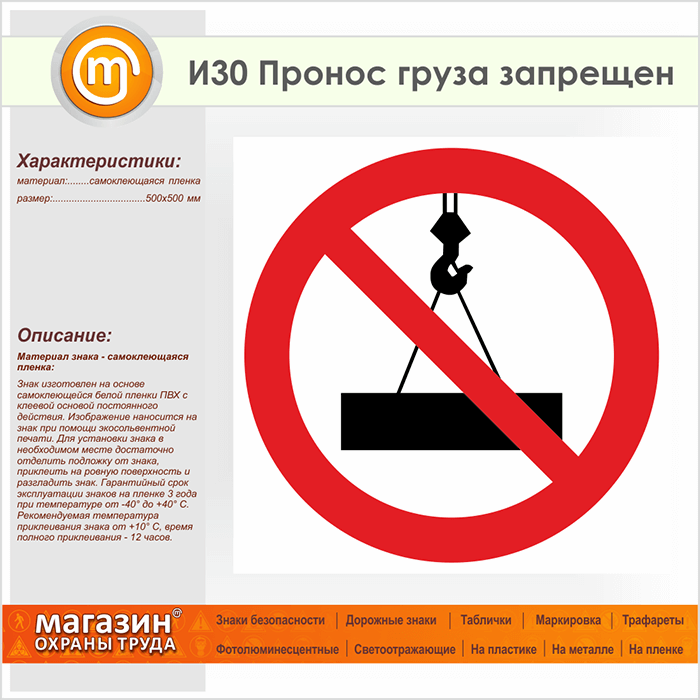 Знак «Пронос груза запрещен», И30 (пленка, 500х500 мм) в Волгограде купить