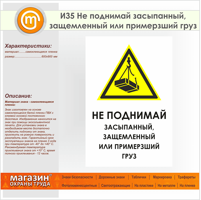Знак «Не поднимай засыпанный, защемленный или примерзший груз», И35 (пленка, 600х900 мм) в Волгограде купить