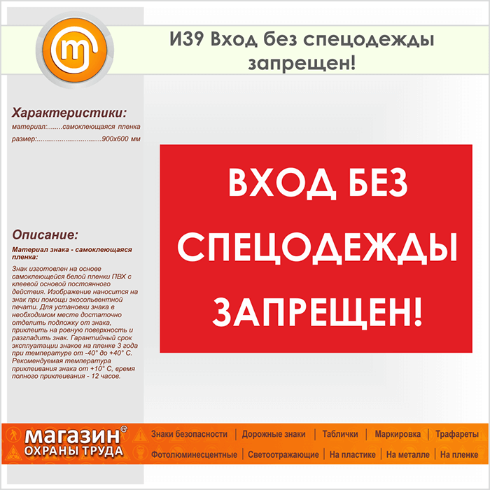 Знак «Вход без спецодежды запрещен!», И39 (пленка, 900х600 мм) в Волгограде купить
