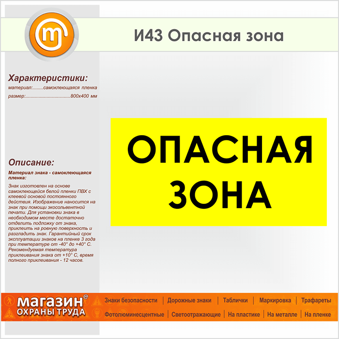 Знак «Опасная зона», И43 (пленка, 800х400 мм) в Волгограде купить