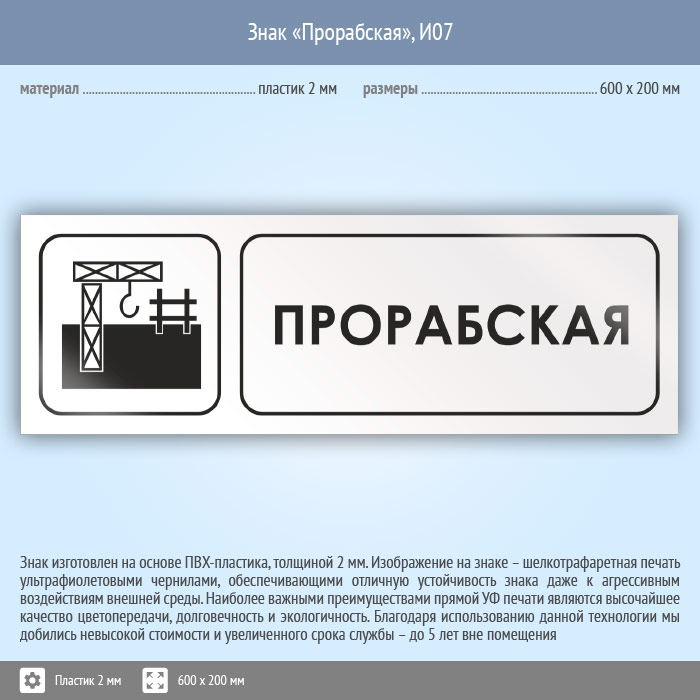 Знак «Прорабская», И07 (пластик, 600х200 мм) в Волгограде купить