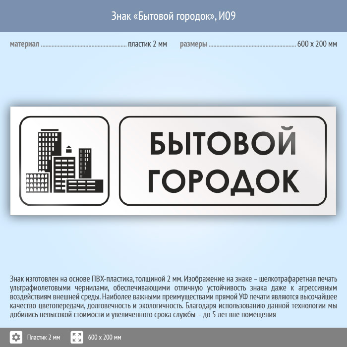 Знак «Бытовой городок», И09 (пластик, 600х200 мм) в Волгограде купить