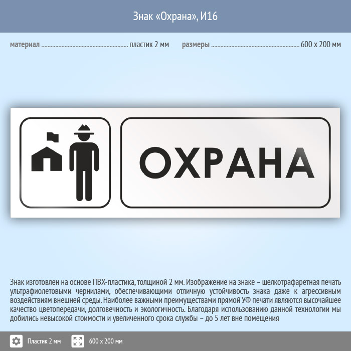 Знак «Охрана», И16 (пластик, 600х200 мм) в Волгограде купить