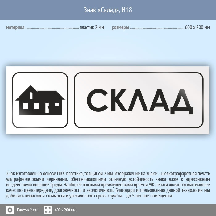 Знак «Склад», И18 (пластик, 600х200 мм) в Волгограде купить