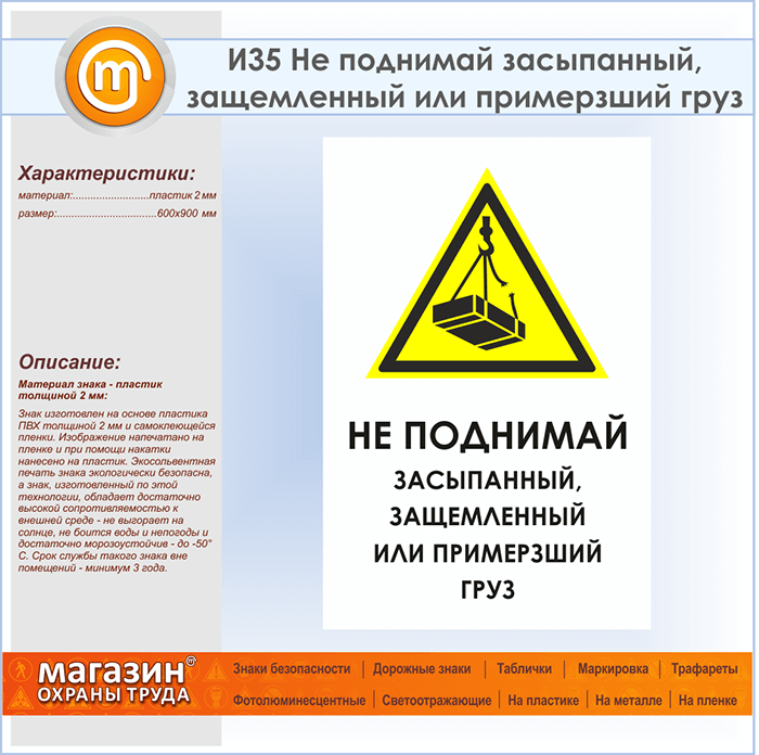 Знак «Не поднимай засыпанный, защемленный или примерзший груз», И35 (пластик, 600х900 мм) в Волгограде купить