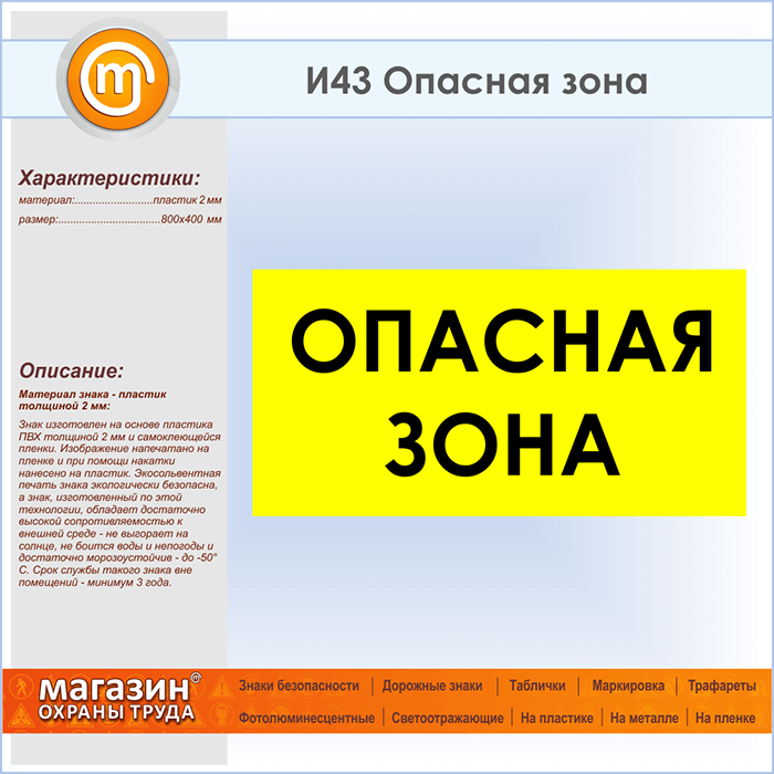 Знак «Опасная зона», И43 (пластик, 800х400 мм) в Волгограде купить
