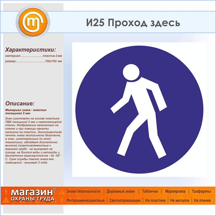 Знак «Проход здесь», И25 (пластик, 700х700 мм) в Волгограде купить
