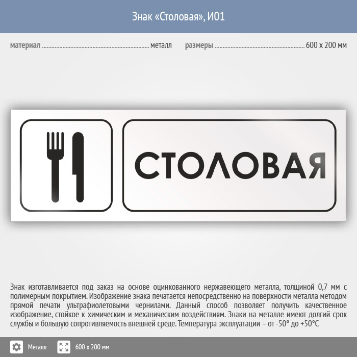 Знак «Столовая», И01 (металл, 600х200 мм) в Волгограде купить