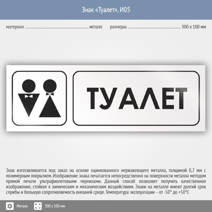 Знак «Туалет», И05 (металл, 300х100 мм) в Волгограде купить