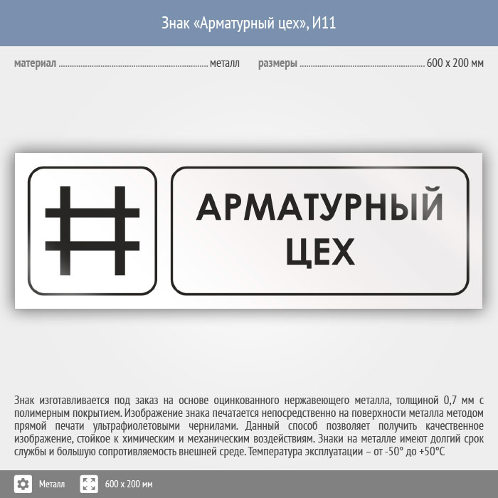 Знак «Арматурный цех», И11 (металл, 600х200 мм) в Волгограде купить