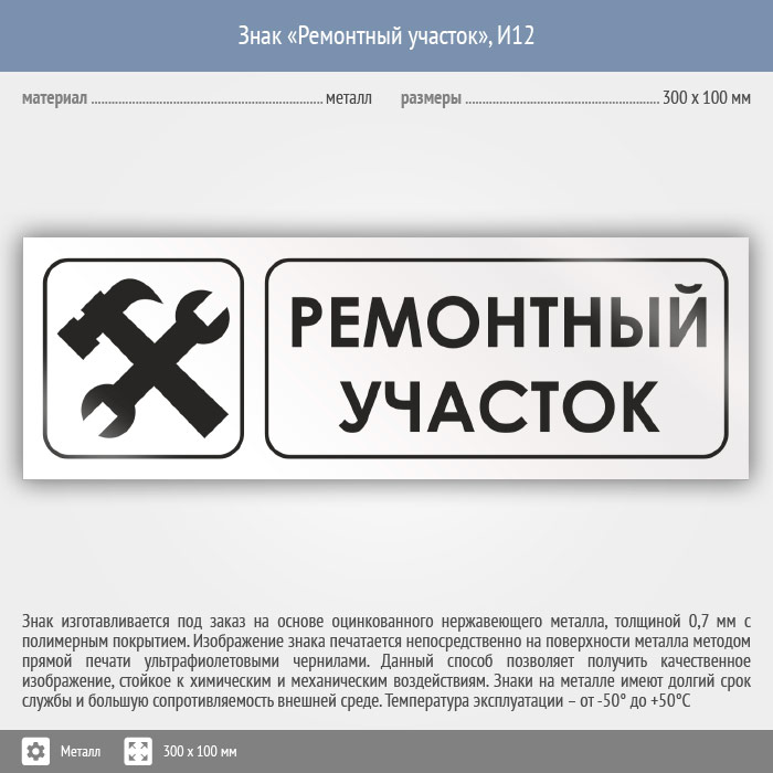 Знак «Ремонтный участок», И12 (металл, 300х100 мм) в Волгограде купить