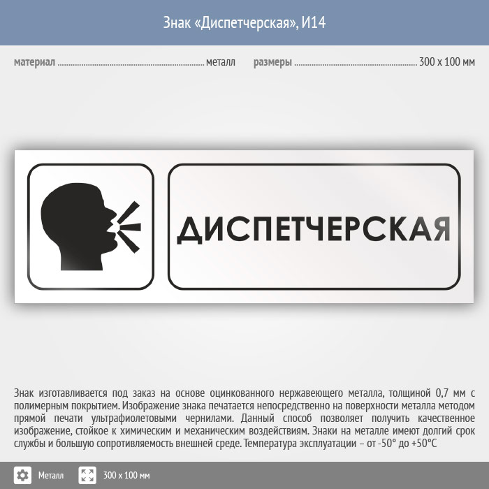 Знак «Диспетчерская», И14 (металл, 300х100 мм) в Волгограде купить