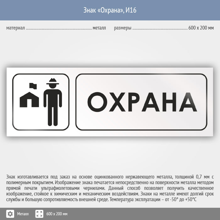 Знак «Охрана», И16 (металл, 600х200 мм) в Волгограде купить