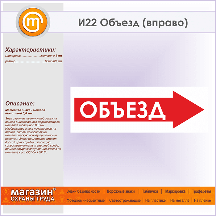 Знак «Объезд (вправо)», И22 (металл, 600х200 мм) в Волгограде купить