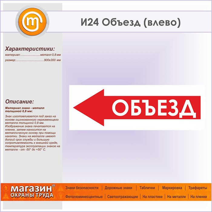 Знак «Объезд (влево)», И24 (металл, 900х300 мм) в Волгограде купить