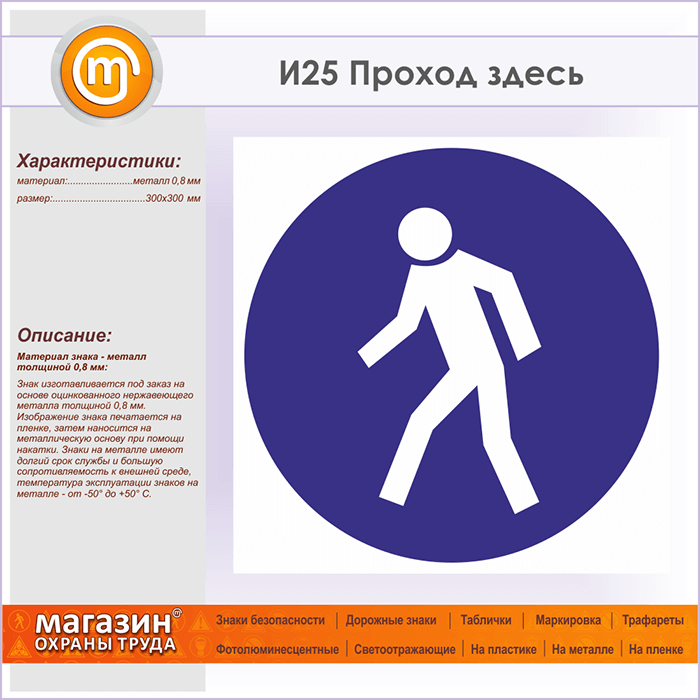 Знак «Проход здесь», И25 (металл, 300х300 мм) в Волгограде купить