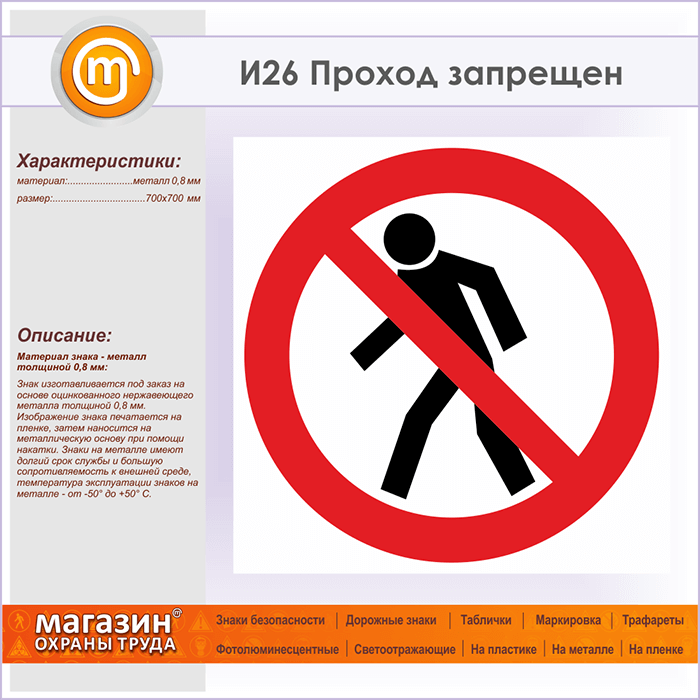Знак «Проход запрещен», И26 (металл, 700х700 мм) в Волгограде купить
