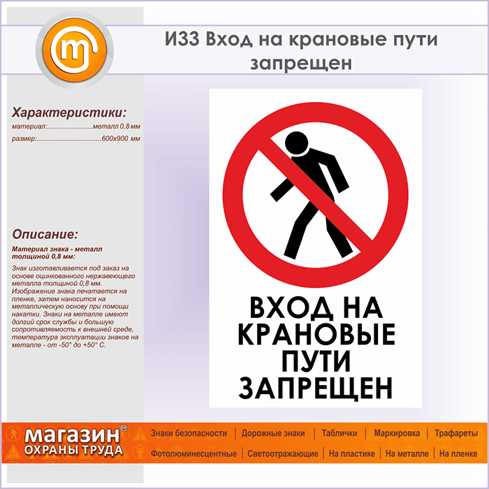 Знак «Вход на крановые пути запрещен», И33 (металл, 600х900 мм) в Волгограде купить