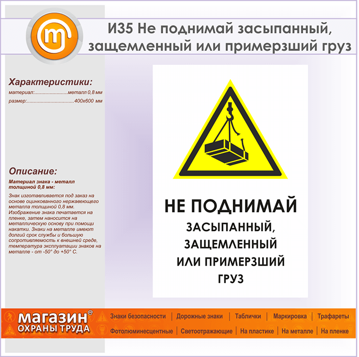 Знак «Не поднимай засыпанный, защемленный или примерзший груз», И35 (металл, 400х600 мм) в Волгограде купить