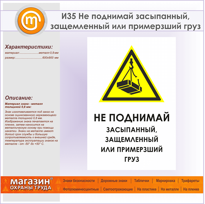 Знак «Не поднимай засыпанный, защемленный или примерзший груз», И35 (металл, 600х900 мм) в Волгограде купить