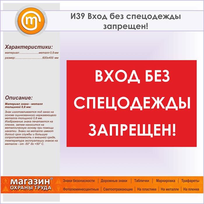 Знак «Вход без спецодежды запрещен!», И39 (металл, 600х400 мм) в Волгограде купить