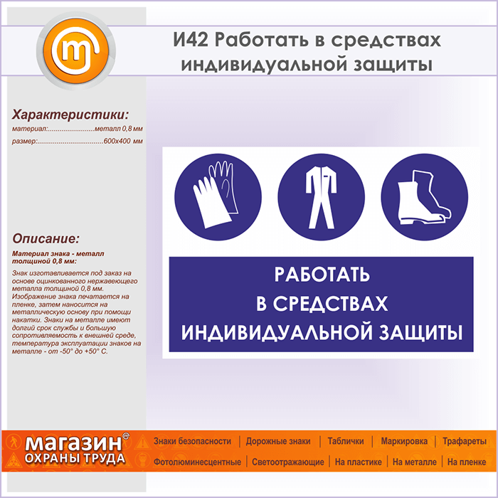 Знак «Работать в средствах индивидуальной защиты», И42 (металл, 600х400 мм) в Волгограде купить