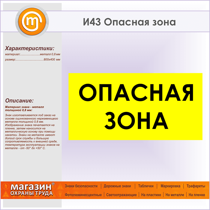 Знак «Опасная зона», И43 (металл, 800х400 мм) в Волгограде купить