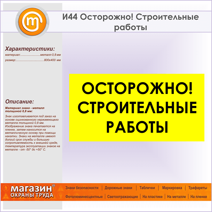 Знак «Осторожно! Строительные работы», И44 (металл, 800х400 мм) в Волгограде купить