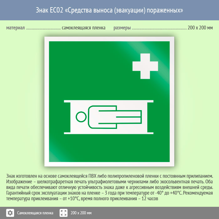 Знак EC02 «Средства выноса (эвакуации) пораженных» (пленка, 200х200 мм) в Волгограде купить