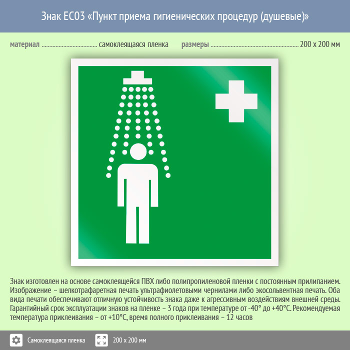 Знак EC03 «Пункт приема гигиенических процедур (душевые)» (пленка, 200х200 мм) в Волгограде купить
