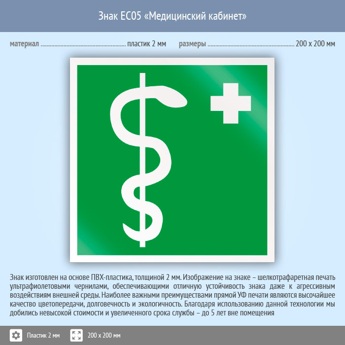 Знак EC05 «Медицинский кабинет» (пластик, 200х200 мм) в Волгограде купить