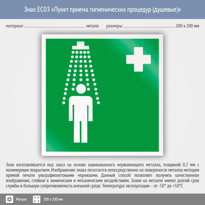 Знак EC03 «Пункт приема гигиенических процедур (душевые)» (металл, 200х200 мм) в Волгограде купить