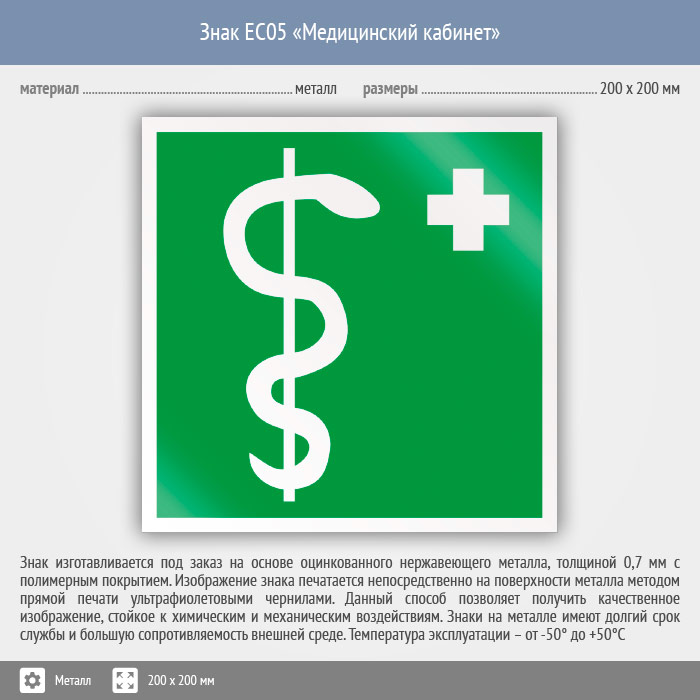 Знак EC05 «Медицинский кабинет» (металл, 200х200 мм) в Волгограде купить