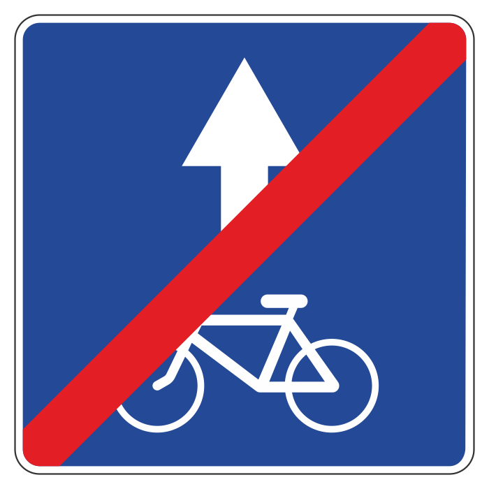 Дорожный знак 5.14.3 «Конец полосы для велосипедистов» (металл 0,8 мм, II типоразмер: сторона 700 мм, С/О пленка: тип Б высокоинтенсивная) в Волгограде купить