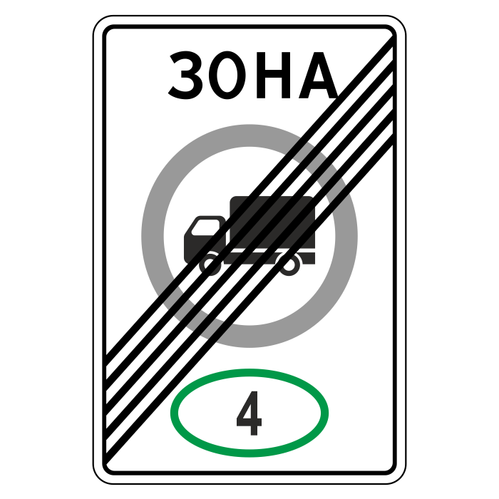 Дорожный знак 5.37 «Конец зоны с ограничением экологического класса грузовых автомобилей» (металл 0,8 мм, I типоразмер: 900х600 мм, С/О пленка: тип А инженерная) в Волгограде купить