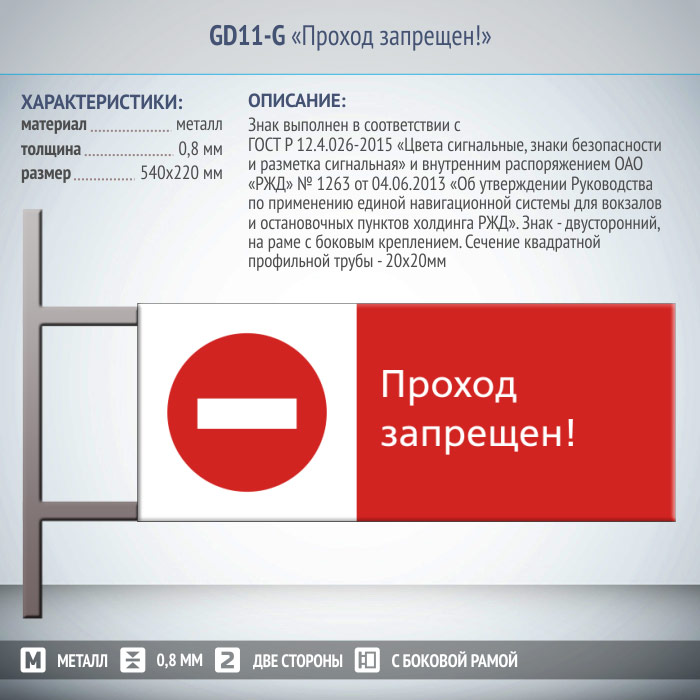 Знак «Проход запрещен!», GD11-G (двусторонний горизонтальный, 540х220 мм, металл, на раме с боковым креплением) в Волгограде купить