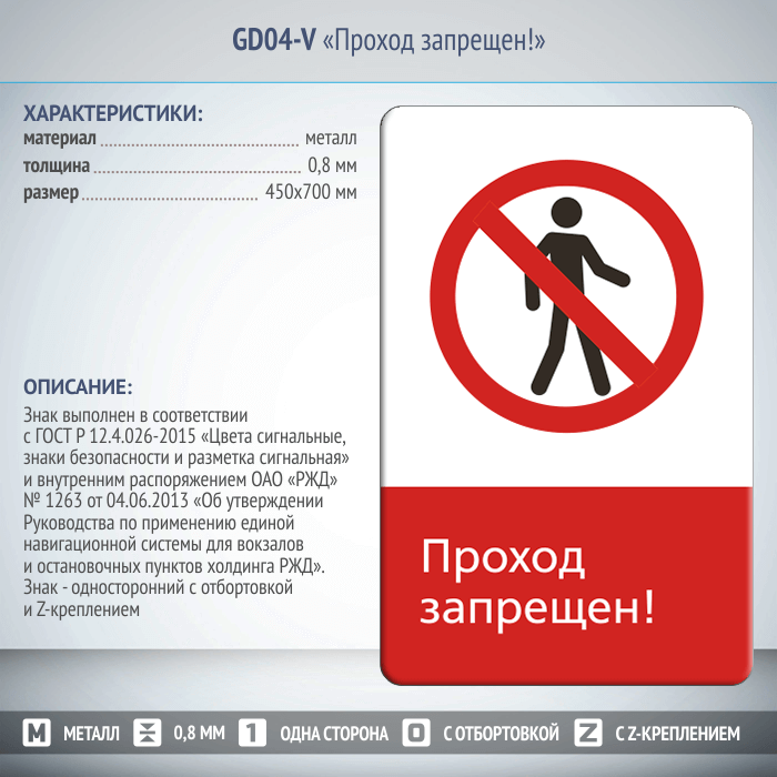 Знак «Проход запрещен!», GD04-V (односторонний вертикальный, 450х700 мм, металл, с отбортовкой и Z-креплением) в Волгограде купить