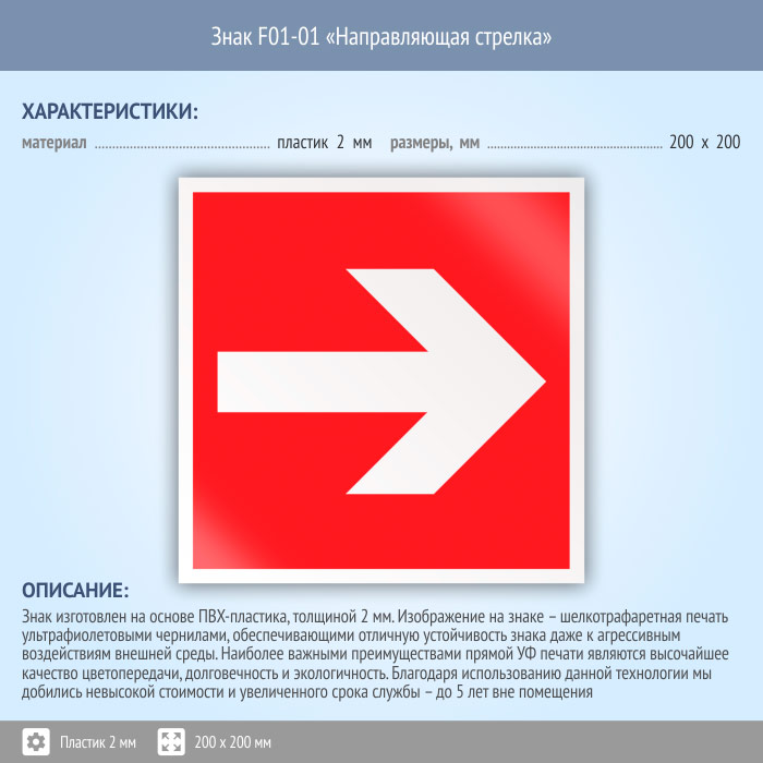 Знак F01-01 «Направляющая стрелка» (пластик, 200х200 мм) в Волгограде купить