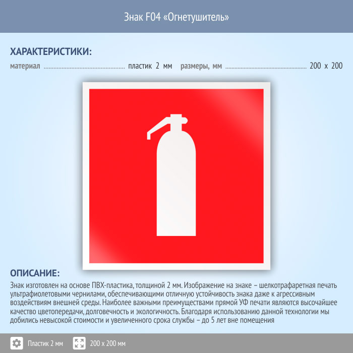 Знак F04 «Огнетушитель» (пластик, 200х200 мм) в Волгограде купить