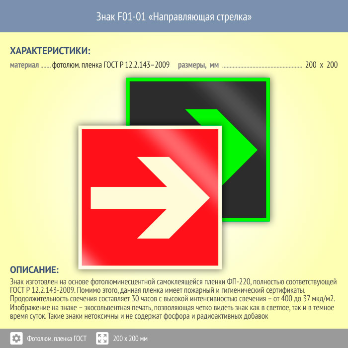 Знак F01-01 «Направляющая стрелка» (фотолюминесцентная пленка ГОСТ 34428-2018, 200х200 мм) в Волгограде купить