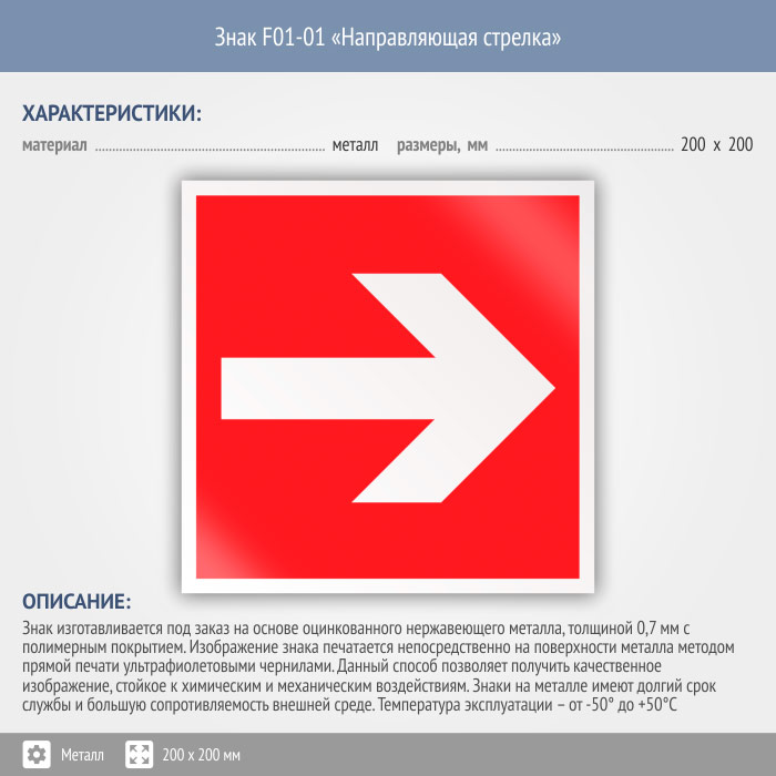 Знак F01-01 «Направляющая стрелка» (металл, 200х200 мм) в Волгограде купить