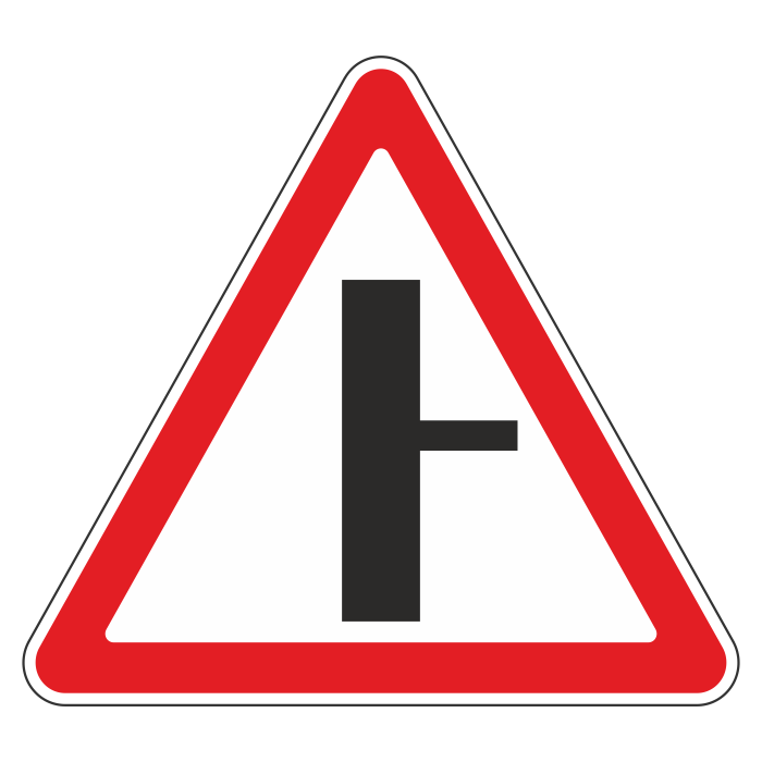 Дорожный знак 2.3.2 «Примыкание второстепенной дороги справа» (металл 0,8 мм, III типоразмер: сторона 1200 мм, С/О пленка: тип А инженерная) в Волгограде купить