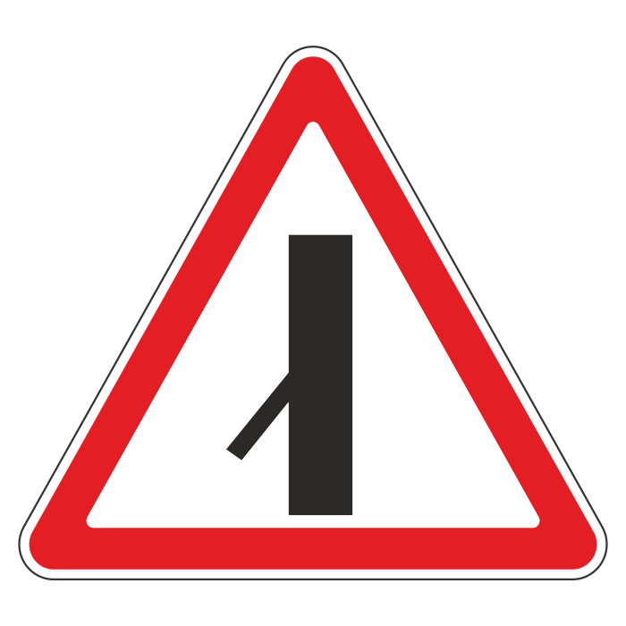 Дорожный знак 2.3.7 «Примыкание второстепенной дороги слева» (металл 0,8 мм, III типоразмер: сторона 1200 мм, С/О пленка: тип А коммерческая) в Волгограде купить