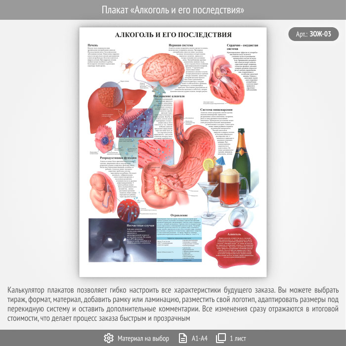 Плакат «Алкоголь и его последствия» (ЗОЖ-03, 1 лист) в Волгограде купить