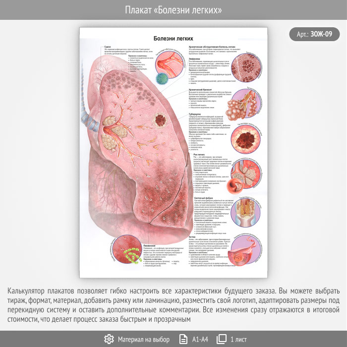 Плакат «Болезни легких» (ЗОЖ-09, 1 лист) в Волгограде купить