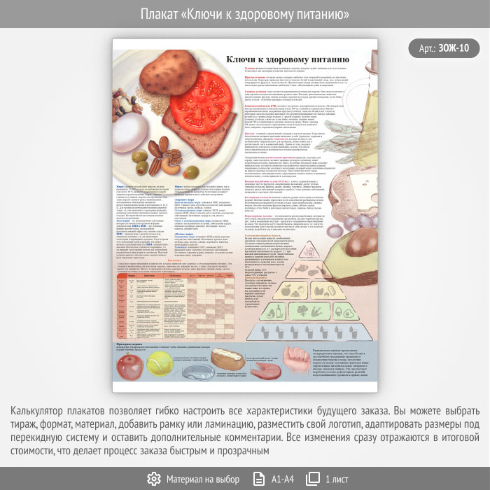 Плакат «Ключи к здоровому питанию» (ЗОЖ-10, 1 лист) в Волгограде купить